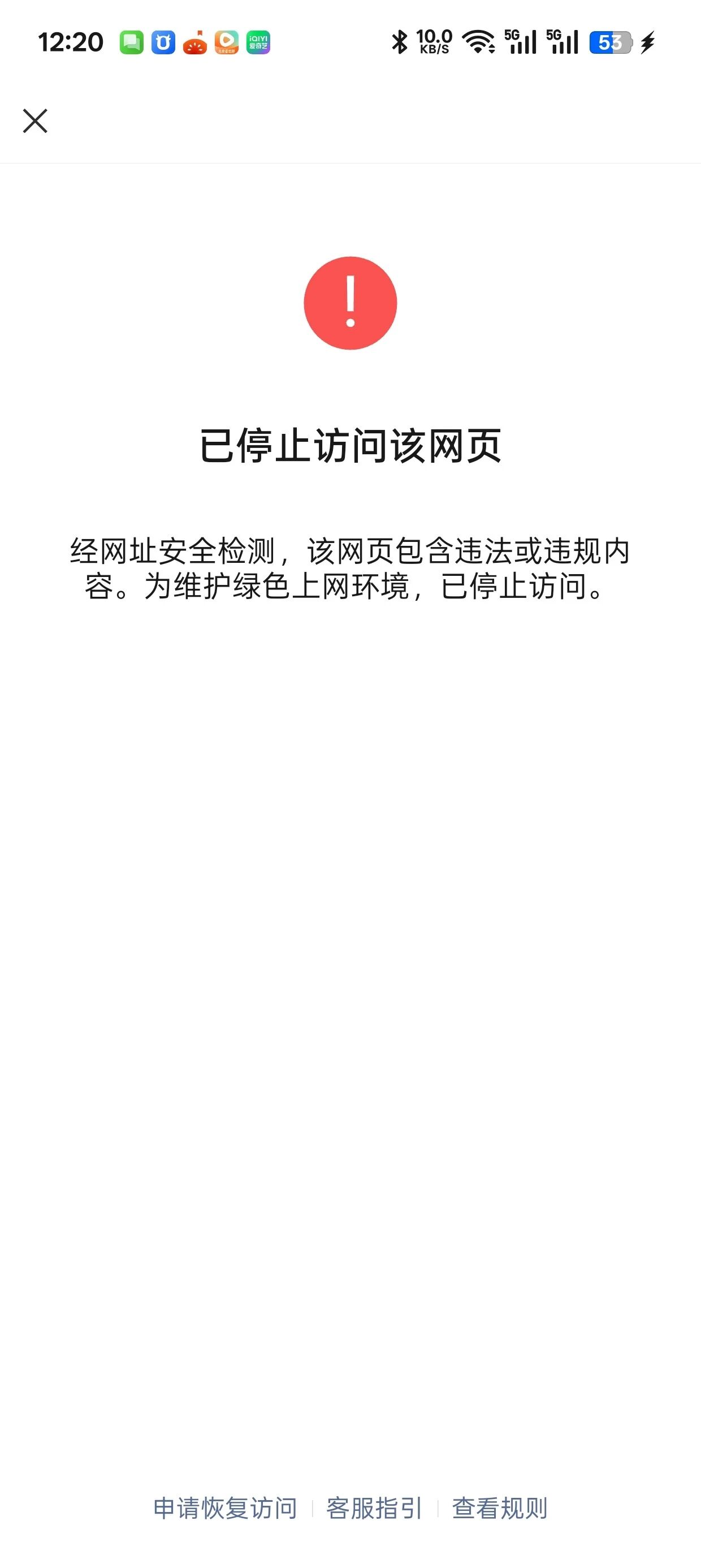 你好,经核实【ahqrdz.com】被手机管家拦截,本系统只处理被微信暂停提供微信内直接访问的服务的外部链接的申诉问题,若非前述事宜,本系统将不予答复,故其他事宜请勿投递本系统。建议登录手机管家官网【http://gj.qq.com/online_server/complain_url.html】自行申诉,知悉。