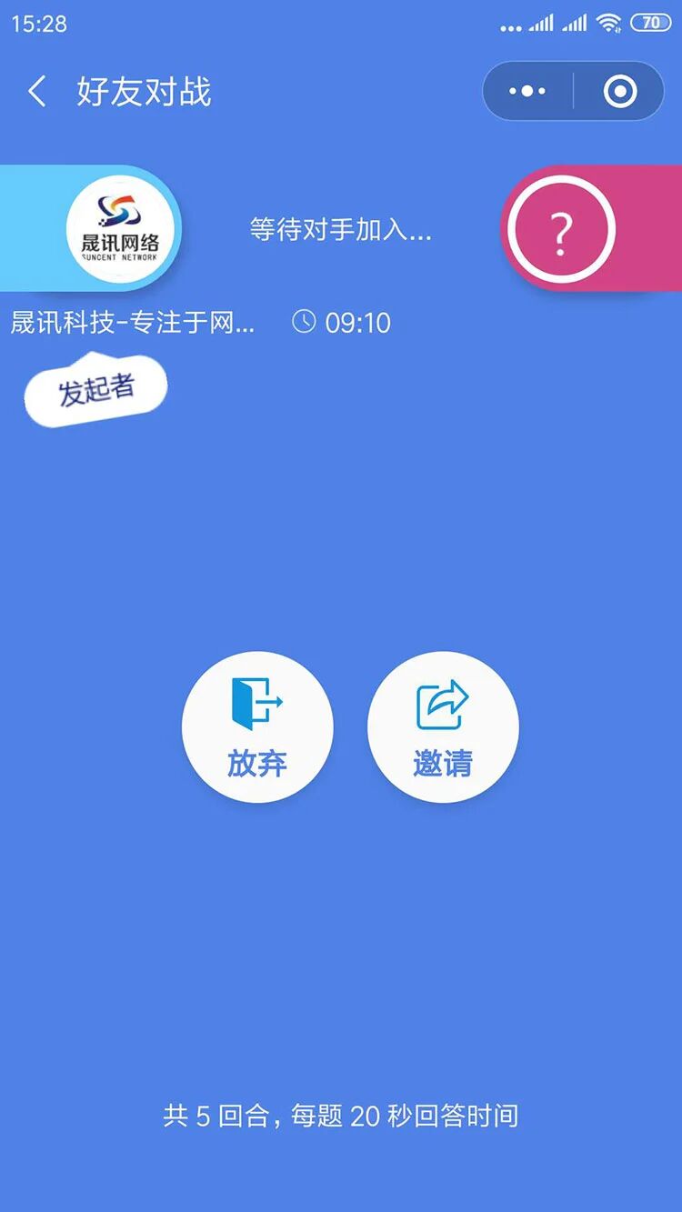 进入团队对战后,可随机匹配战队,(人数为2±)也可以邀请在线好友一起组队。两个团队成员每人按照顺序答题(他人答题时战队成员只看观看,不可文字提示等),答对一题团队每人可获得200积分,答错不扣分。