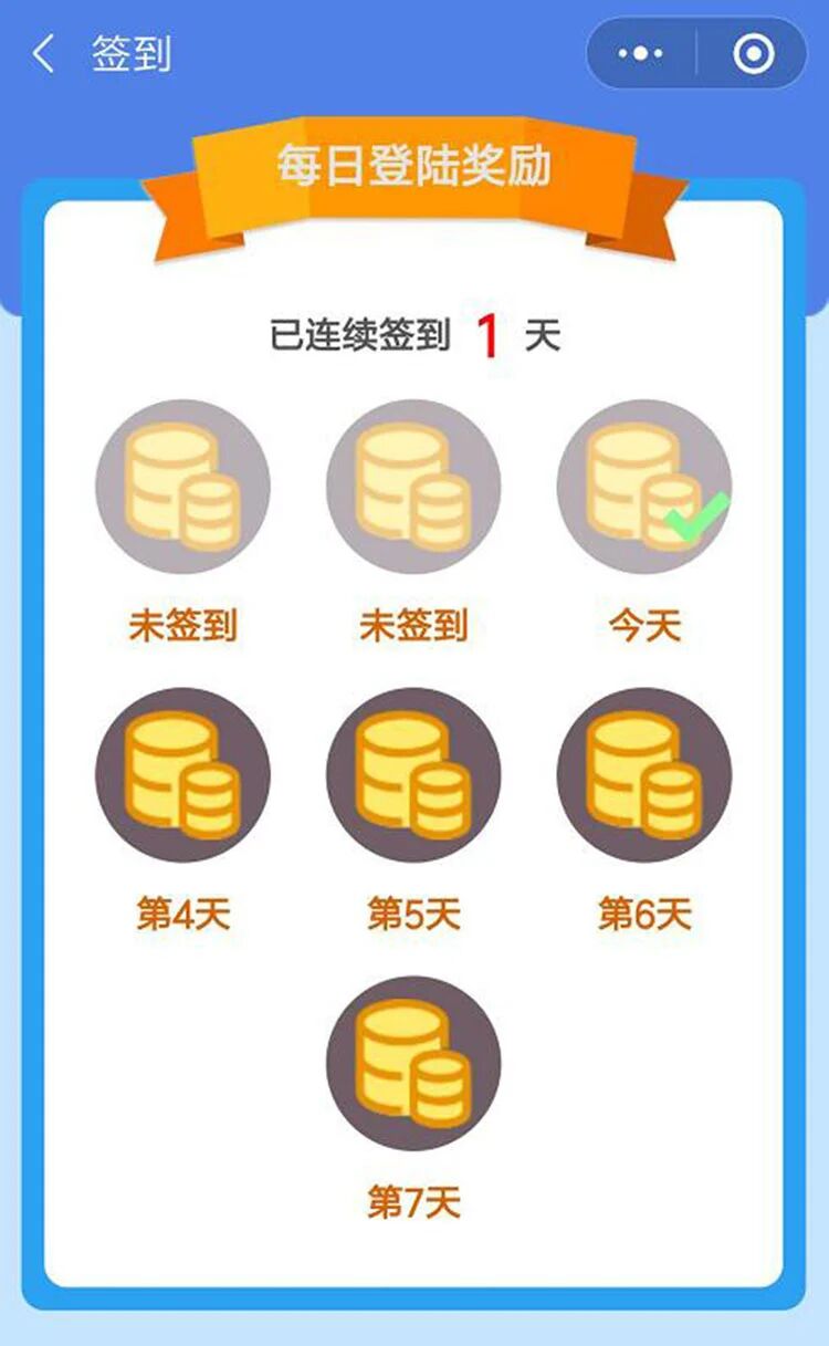 签到可以有效的提升用户粘度,每天签到领取积分,连续签到有额外奖励。