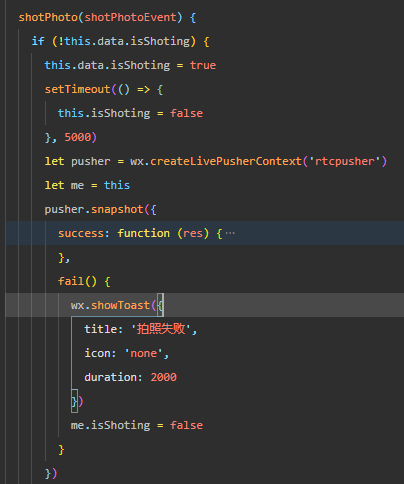 调用snapshot接口,会进入fail方法。提示拍照失败