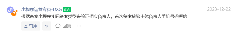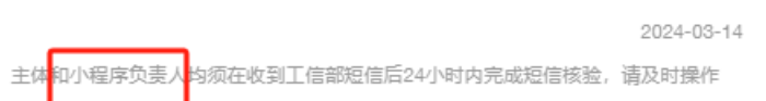 根据备案小程序实际备案类型来验证相应负责人,首次备案核验主体负责人手机号码短信