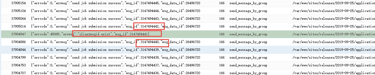 {"errcode":45065,"errmsg":"clientmsgid exist","msg_id":3147494441}