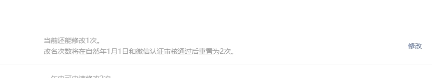 考虑到用户后台小程序名称还有修改次数,系统将优先按照小程序原有的改名次数进行消耗。一旦用户的名称修改次数耗尽,即次数为0时,若再因小程序备案被驳回而需修改名称,用户将获得一次额外的名称修改机会。