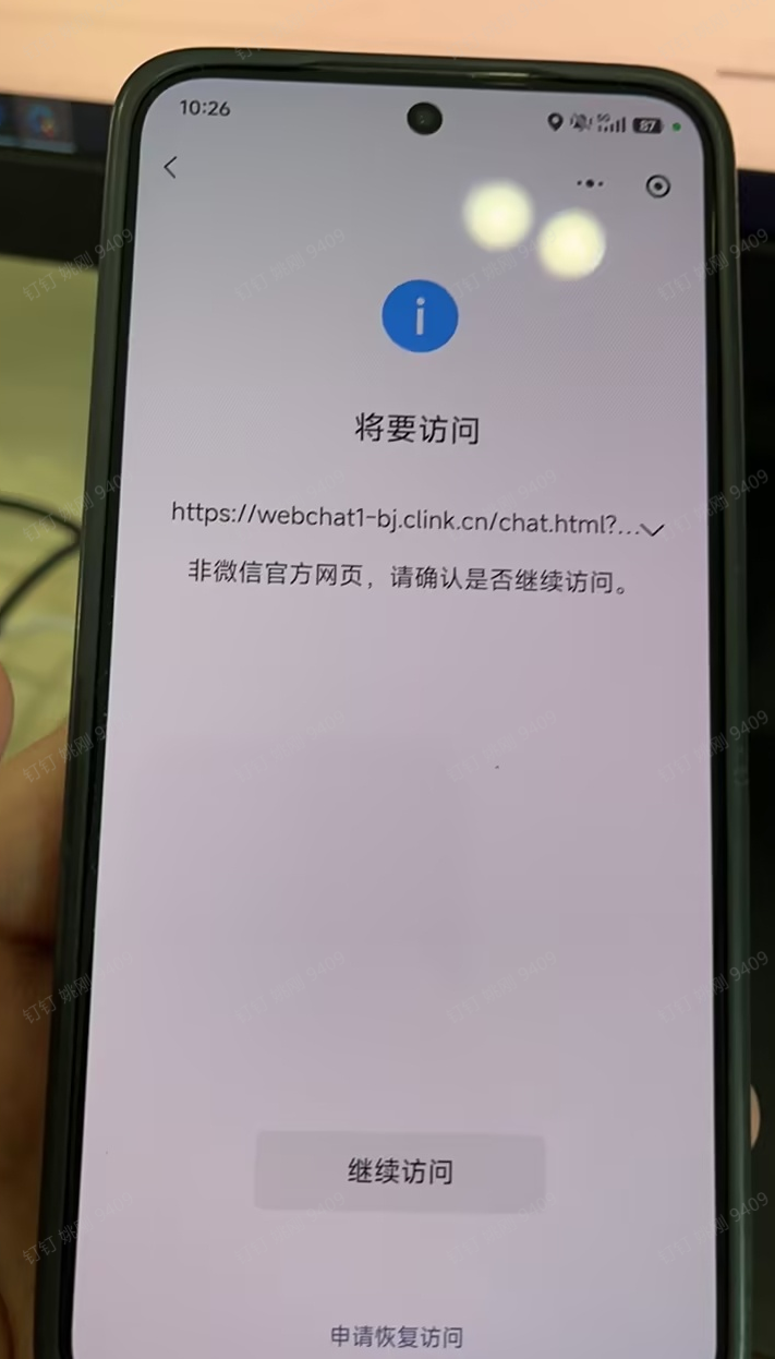 您好,域名 clink.cn 购买并进行管局备案,webchat-sh.clink.cn和webchat-bj.clink.cn 浏览器访问正常,微信内点开网址提示“非微信官方网页,请确认是否继续访问”经检查网页里没有不安全的内容,并且已经提交过证明材料并添加为白名单,请核实后帮忙解除拦截,谢谢!尽快处理,急急急,现在需要打开使用,谢谢
