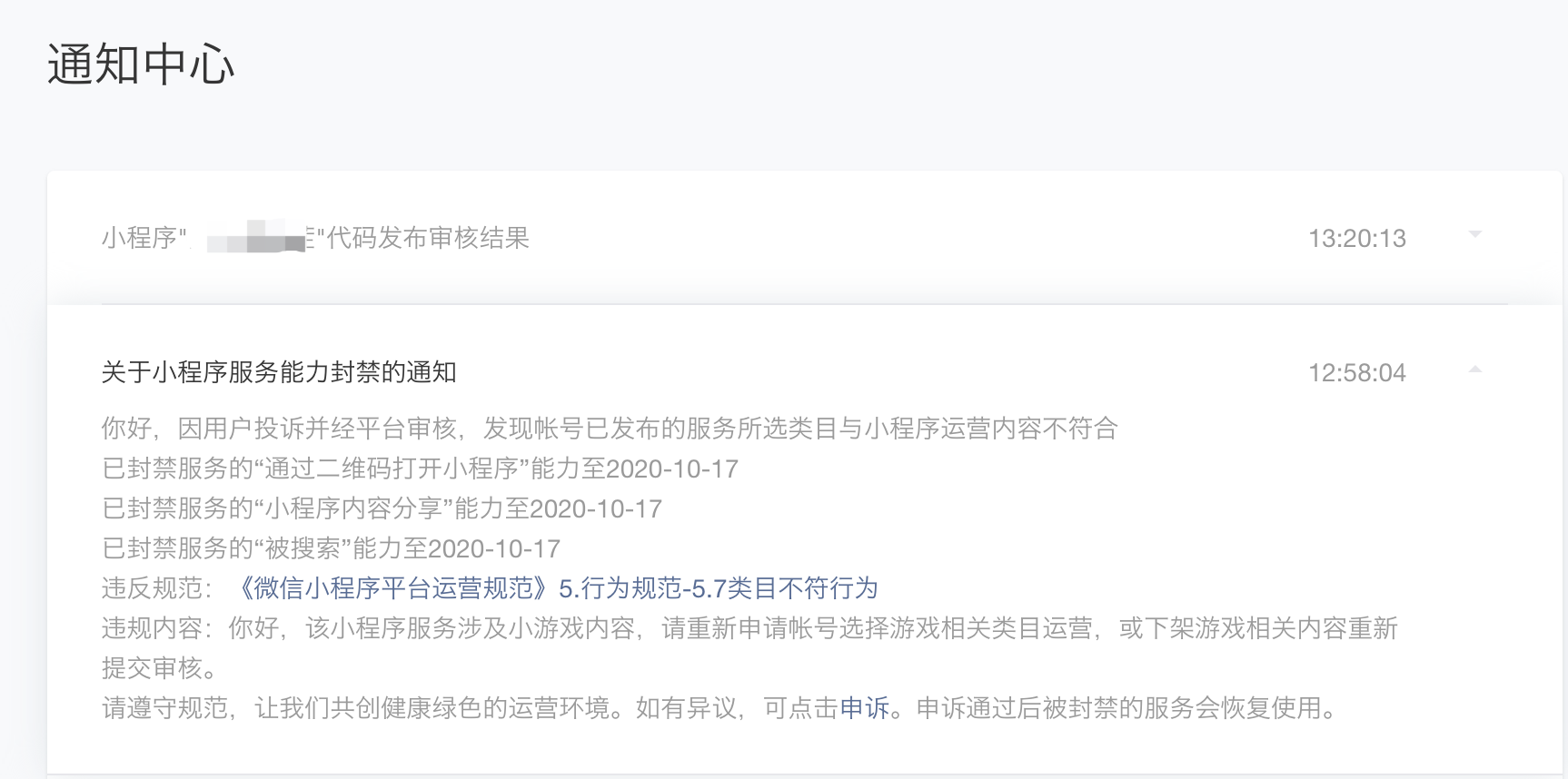 你好,小程序申诉7个工作日内审核完毕,请留意申诉结果。