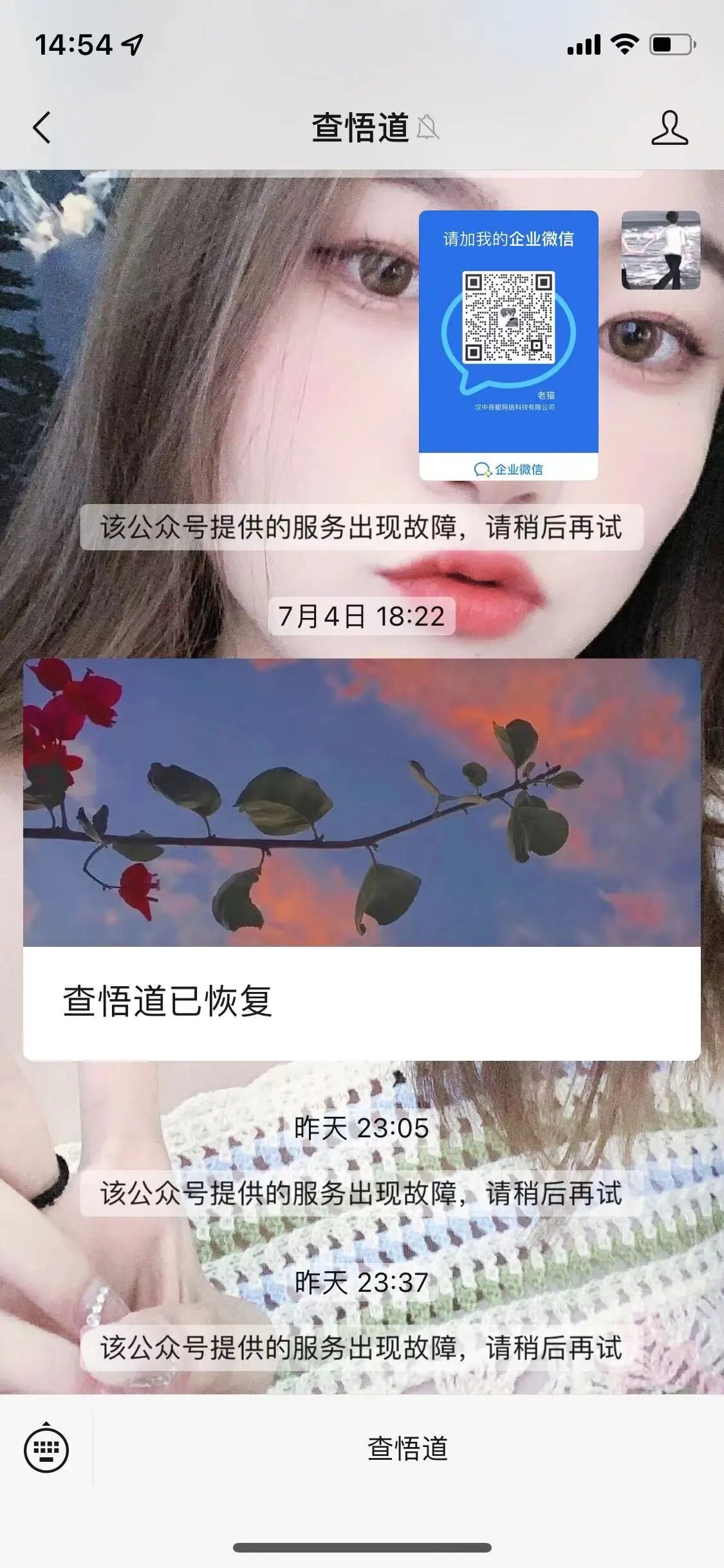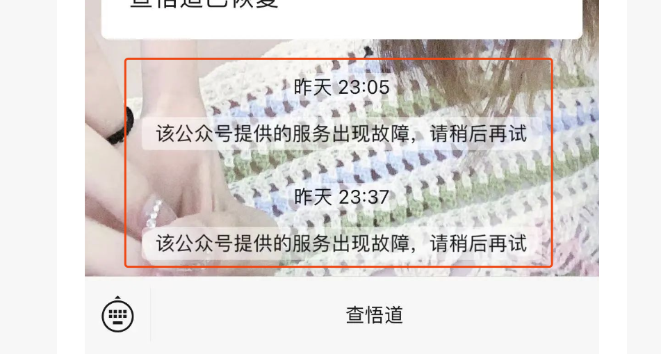 如图所示 显示公众号服务出现故障 公众号是已认证的 手机端网页登录也是正常的 网站地址 chawudao.com