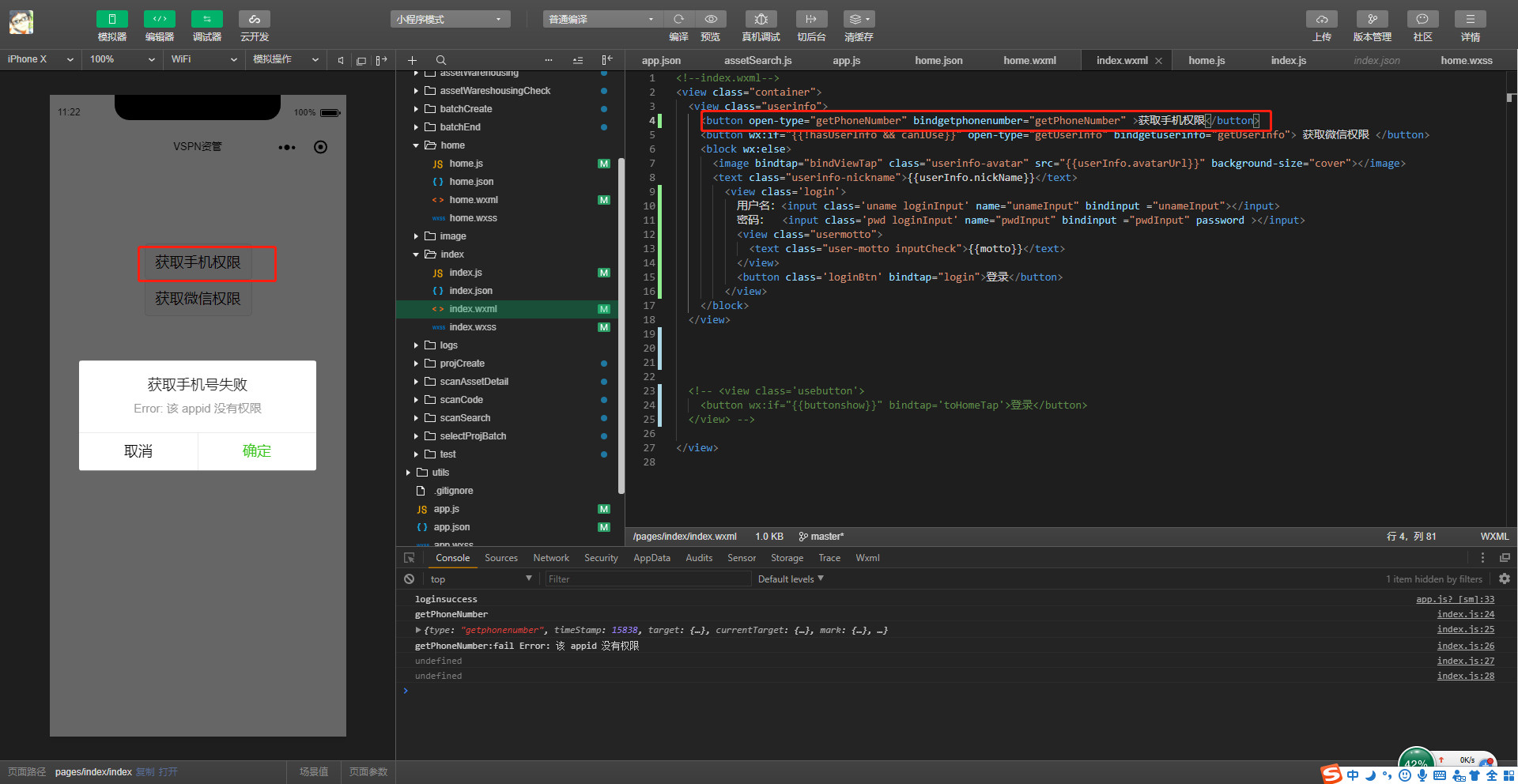 3、我利用button调用getPhoneNumber还是提示没有权限