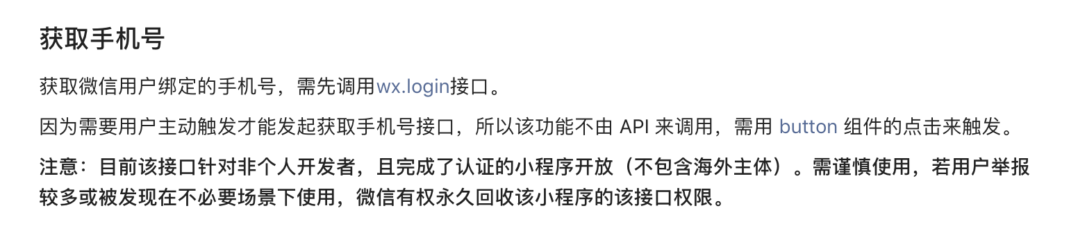 你好,可以对照文档看看是否符合要求:https://developers.weixin.qq.com/miniprogram/dev/framework/open-ability/getPhoneNumber.html