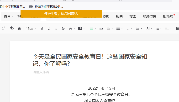 【问题描述】: 推文已经写完了,点击保存草稿时出现保存失败的字样,不能保存和发布
