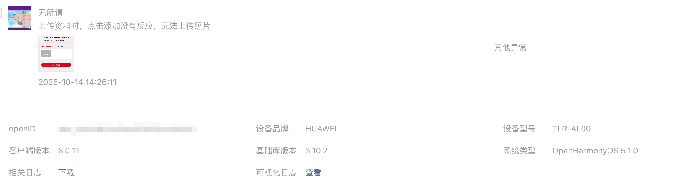 在鸿蒙5.1或6的微信8.0.11中,小程序的webview中的h5页面,无法通过jssdk唤起相册和拍照。点击反应。如果单独把h5页面在微信中直接打开是正常唤起相册和拍照的。