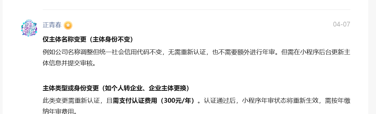之前搜到的信息是说不用的, 我们主体企业名称和代码都已变更成功,但后台还是提示需重新认证年审
