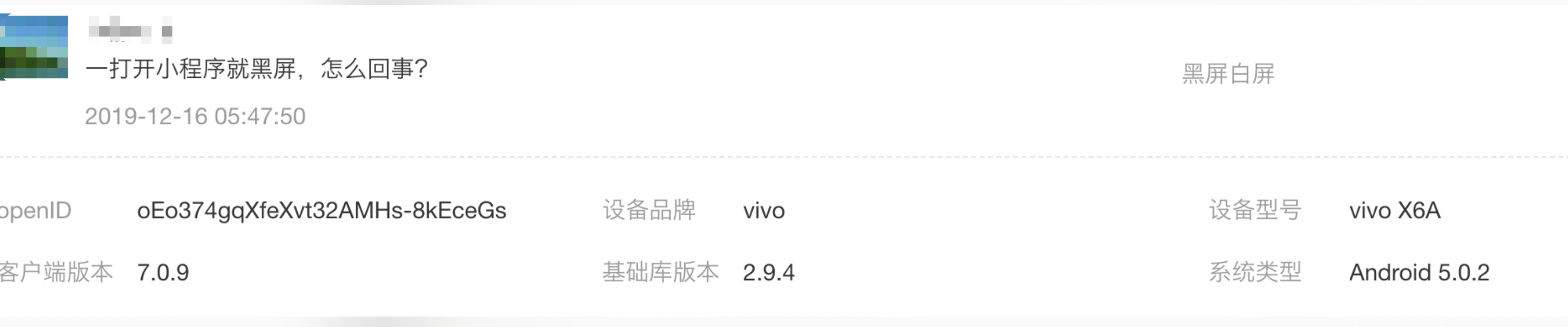 最近使用 小程序的时候,频繁出现黑屏情况 ,不仅仅是一个小程序,一段时间打开小程序使用必定复现。