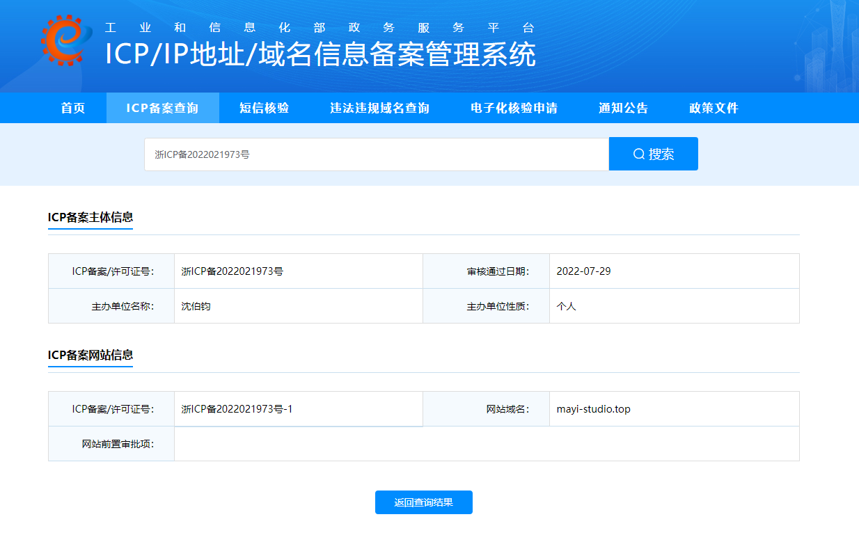 http://mayi-studio.top/ 是我新注册的域名,已通过ICP 备案。