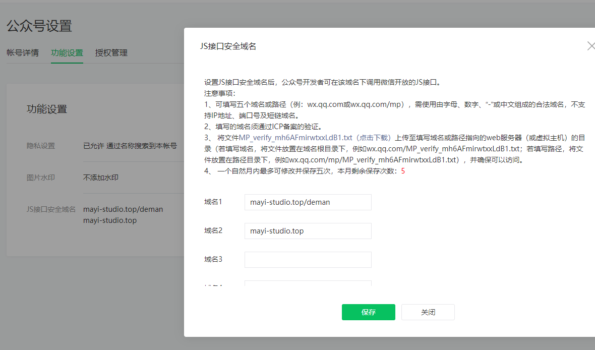 微信JS接口也弄好了,微信公众号域名也绑定了,TXT文件也放好了