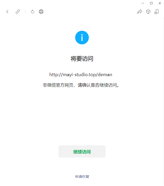 目前被微信拦截了,提示非官方网址,无法直接访问,必须要点击一个按钮才能访问。