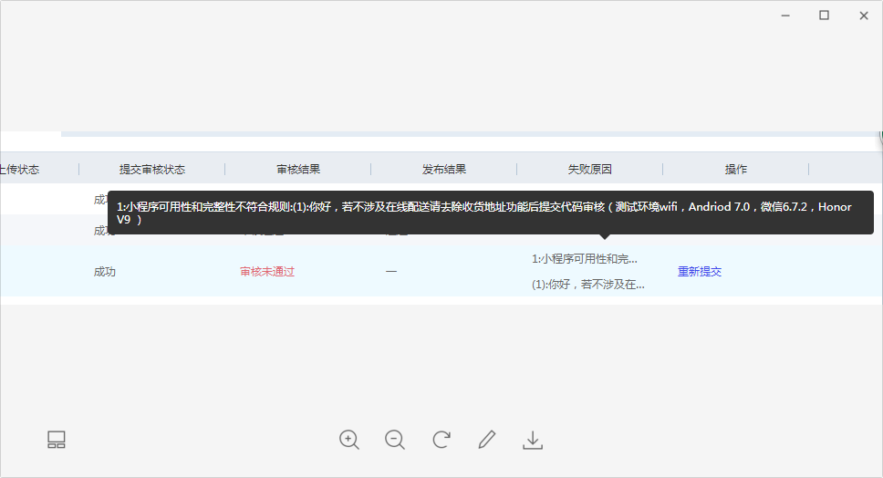 问题描述一下,我们公司开发的第三方平台,给零售便利小卖店开发小程序,现在后台可以配置支持配送和不支持配送,随时可改。因为小程序里面有收货地址模块,现在给我审核不通过,原因就是下面的截图,第一次遇到也是无语了,我有收货地址也通不过。。审核人员能不能考虑不管这一块呢?