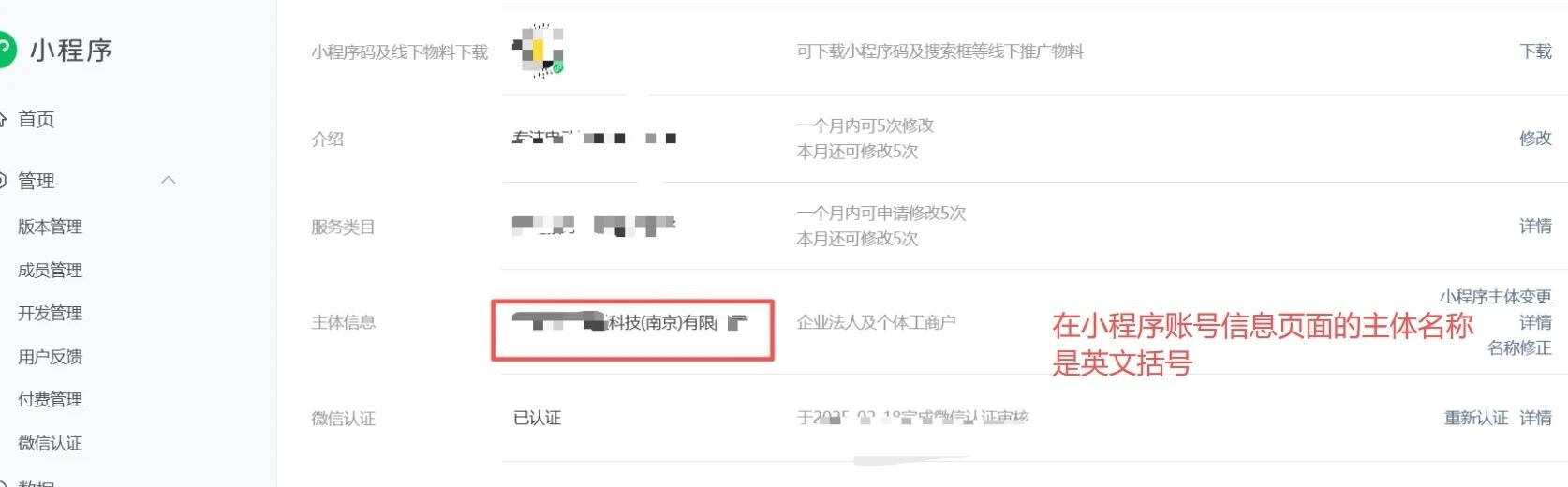 - 核心阻碍原因:小程序认证系统强制要求主体名称中的括号为英文状态括号 “()” ,视频号认证系统却允许并显示为中文状态括号 “()” ,因括号格式差异,系统判定 “主体不一致”,导致关联功能无法正常操作。