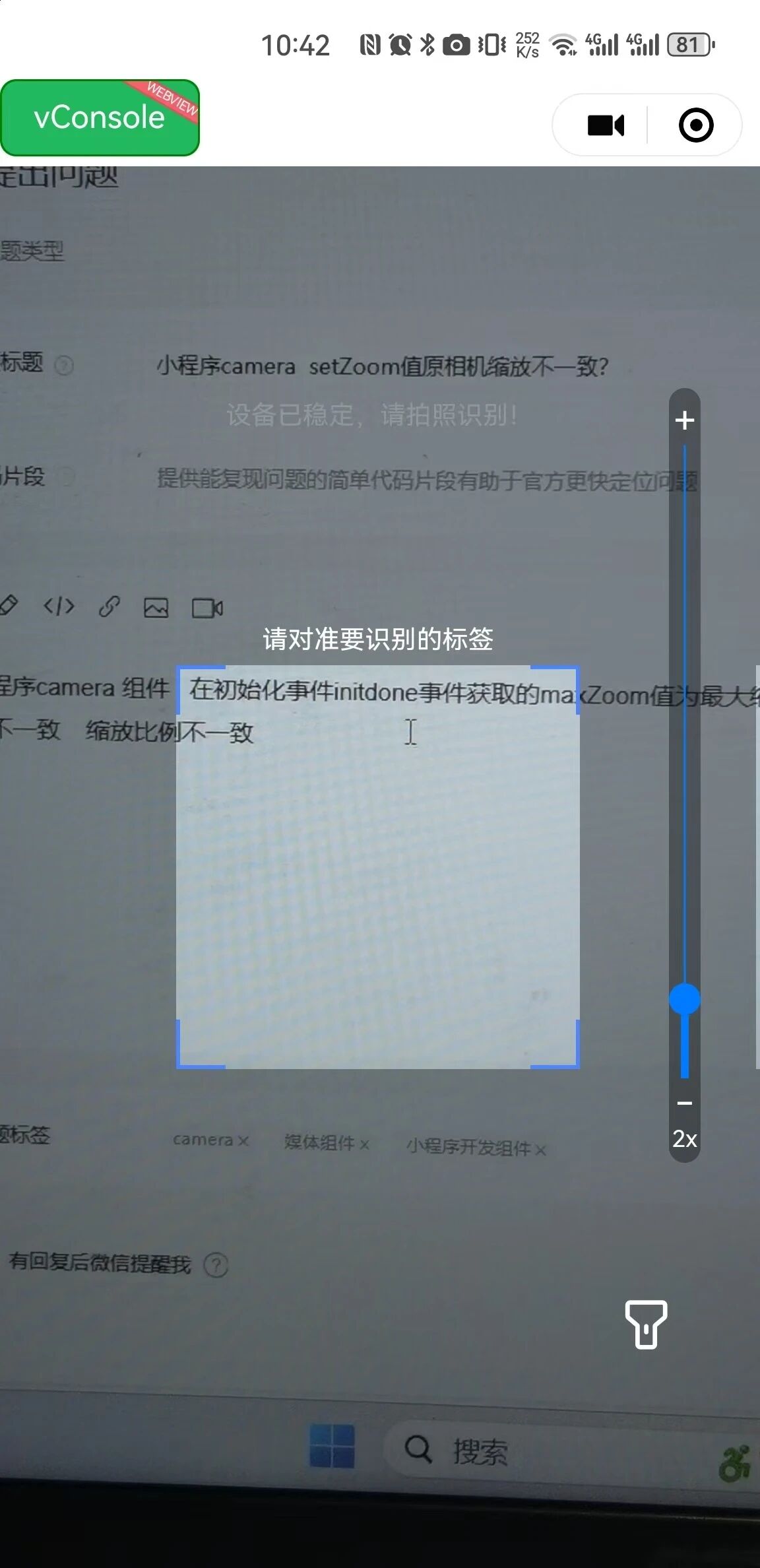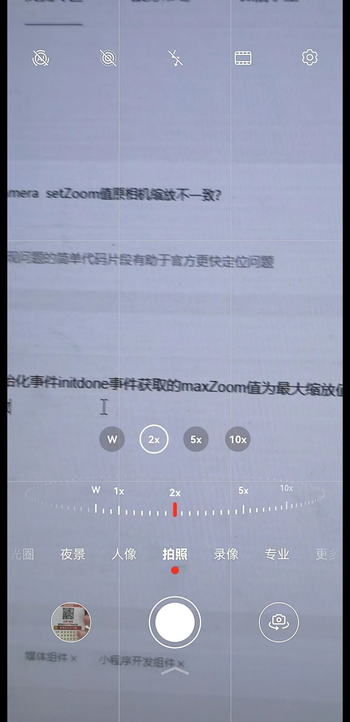 小程序camera 组件 在初始化事件initdone事件获取的maxZoom值为最大缩放值 在这个值区间内对camera组件使用setZoom 但获取的画面与微信原相机不一致 缩放比例不一致