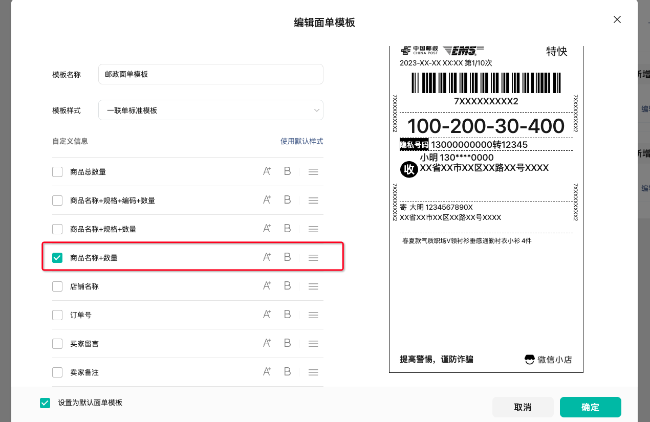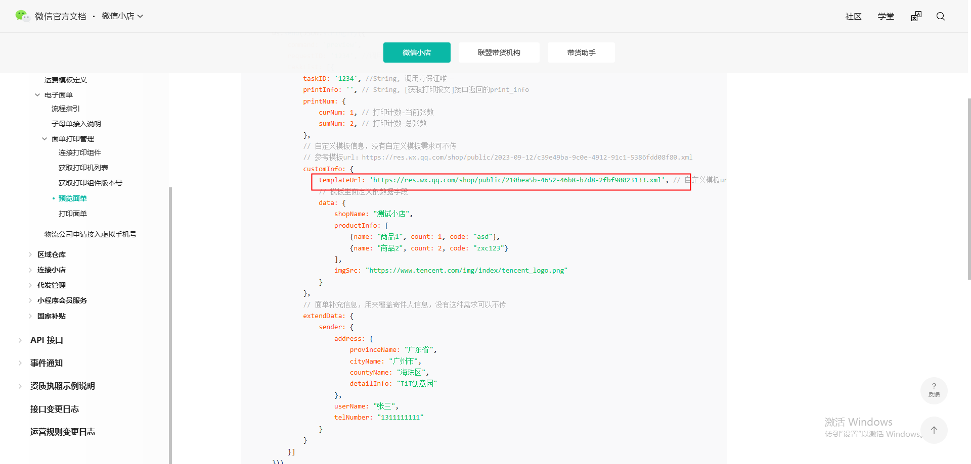 请问这个自定义模板的URL该如何获取,面单模板自定了商品名称和数量字段。