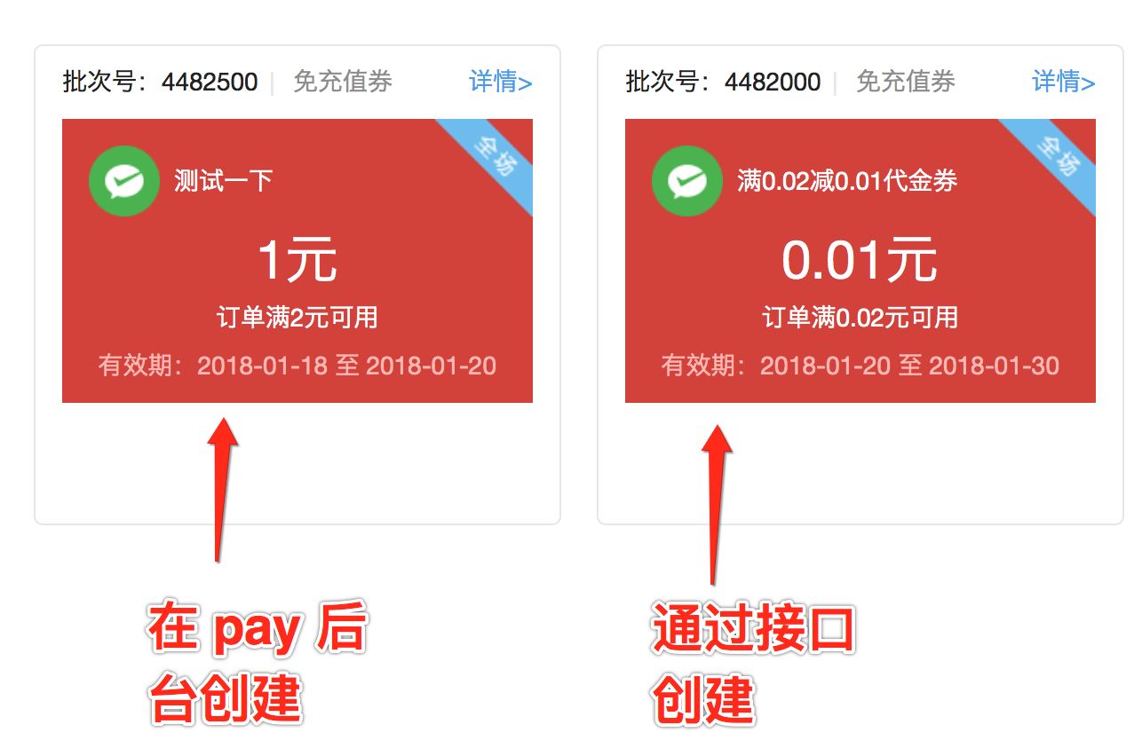 https://api.weixin.qq.com/card/create)创建的卡券无法添加到活动中;而通过 pay.weixin.qq.com 后台创建的卡券没有问题。