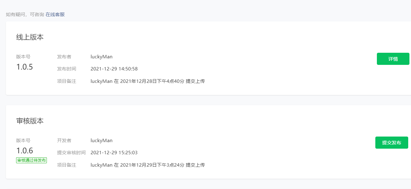 新版本1.0.6审核通过后,提交发布,扫二维码授权成功, 新版本没有替换线上旧版本1.0.5,这个怎么回事