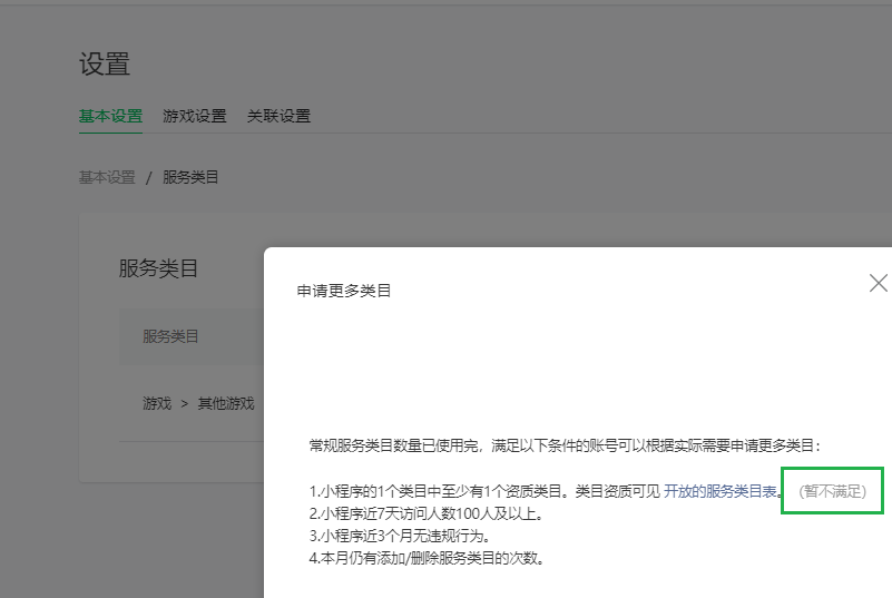 小程序已经上线,但条目1未满足,请问在什么条件下能将【游戏-其他】,修改为【游戏-模拟经营】???