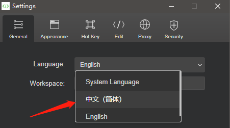 你好,可以打开项目后在settings-general settings里面设置为中文(简体)