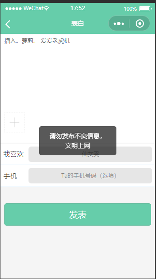 你好,经核实,你的帐号确实存在涉嫌未设置过滤违法、违规等不当信息内容的机制,请自觉遵守国家相关法律法规,不从事违法或违反《微信小程序平台运营规范》及相关规则的内容和行为,谢谢。(发布帖子-可输入上传违规敏感图片信息)