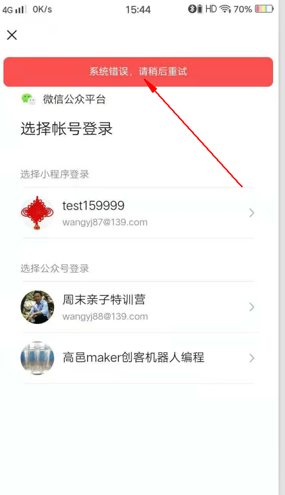 我申请了两个账号,然后可以正常登录管理,另一个账号会出现错误提示,详见截图