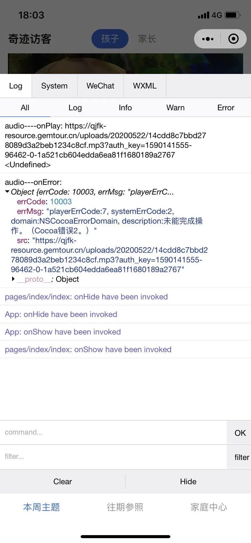 使用BackgroundAudioManager进行背景音频播放,音频格式mp3,在开发工具和安卓手机上能正常播放,在ios上会无响应,触发onError事件,具体error内容请看截图,