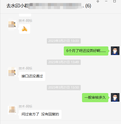 我花钱找人做了一个去水印小程序,官方一直没动静,问人,他说官方接口不审核,都四个月了