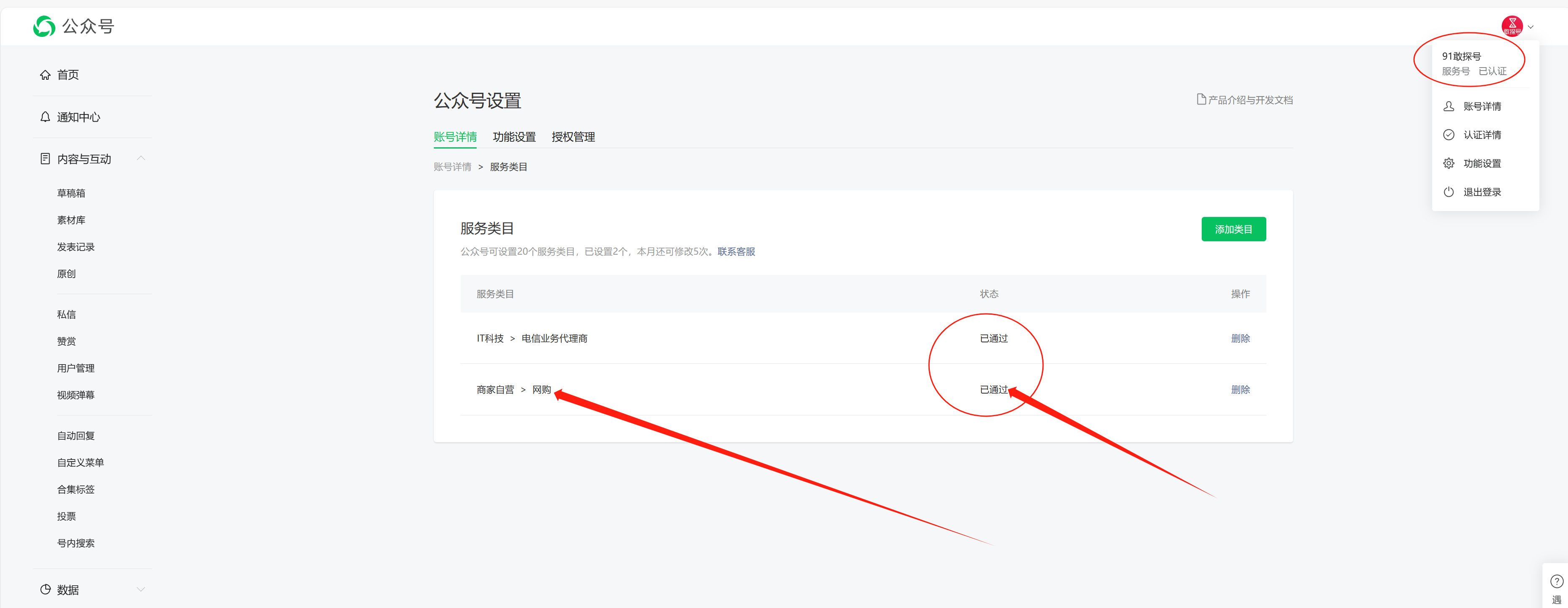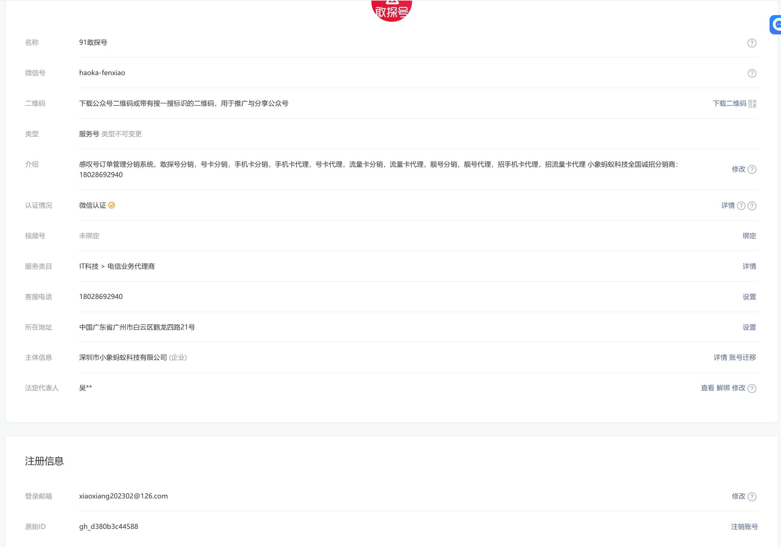 公众号是宣传流量卡和手机卡业务的。服务类目是添加了两个的,一个是“电信运营商代理”,一个是“网购”。