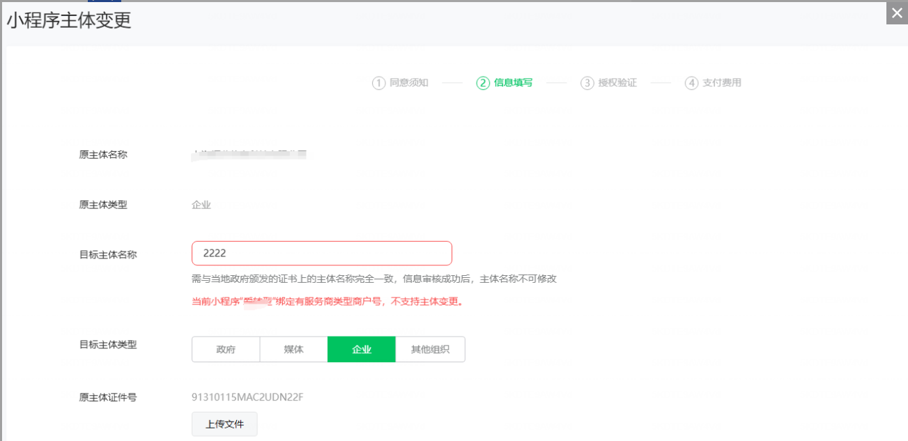 小程更换主体,提示当前小程序绑定有服务商类型商户号,不支持主体变更。如何进行更换主体? 解绑不了,