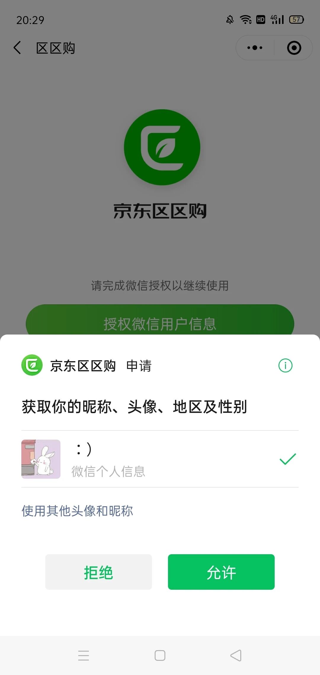 小程序是京东区区购,,尝试退出登录微信,再进入还是不行