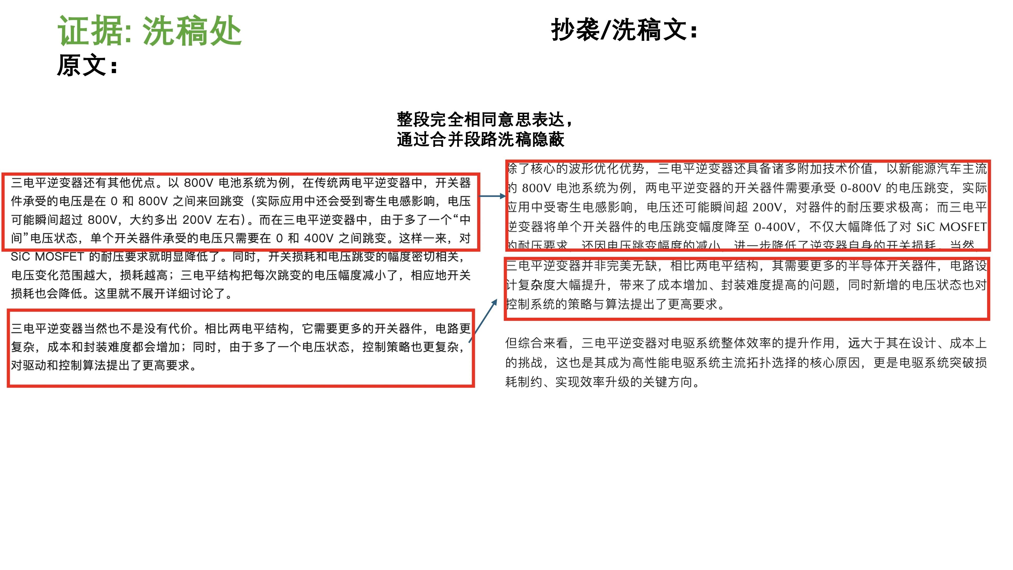 第三篇洗稿证据非常明显,而且明显利用了加长或减短原文描述,拆分或者合并原文段落等手段进行隐蔽。