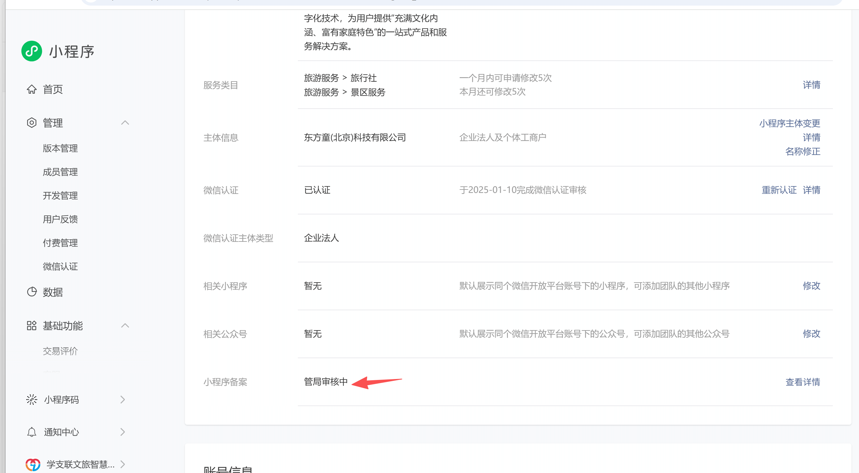 但是,微信小程序后台,备案的地方提示,管局审核中,我打电话问管局,管局说小程序负责人还没有短信验证,请我是什么原因?