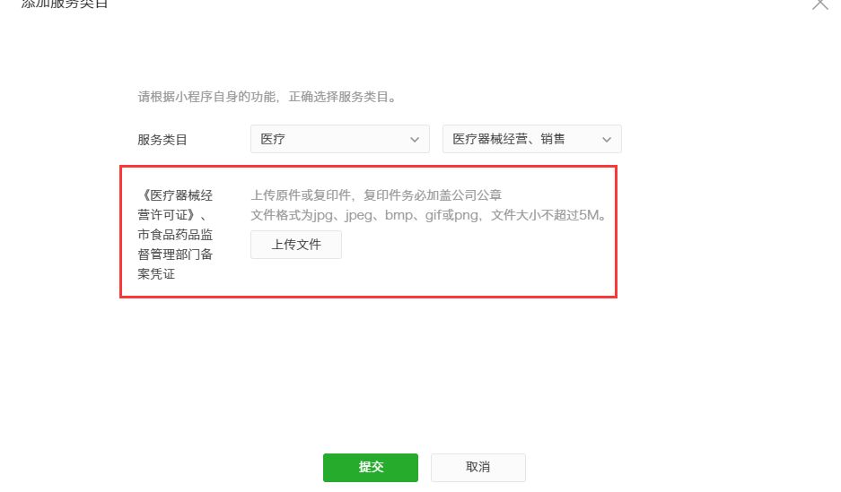如图,请问医疗器械经营、销售类目,需要提交的证件能不能是食品药品监督管理部门备案凭证呢?小程序主体公司是有这个证件的,《第二类医疗器械经营备案凭证》这个备案凭证上是有市食品药品监督管理部门的落款,能否告知这个证件怎么就不能做凭证审核通过呢?
