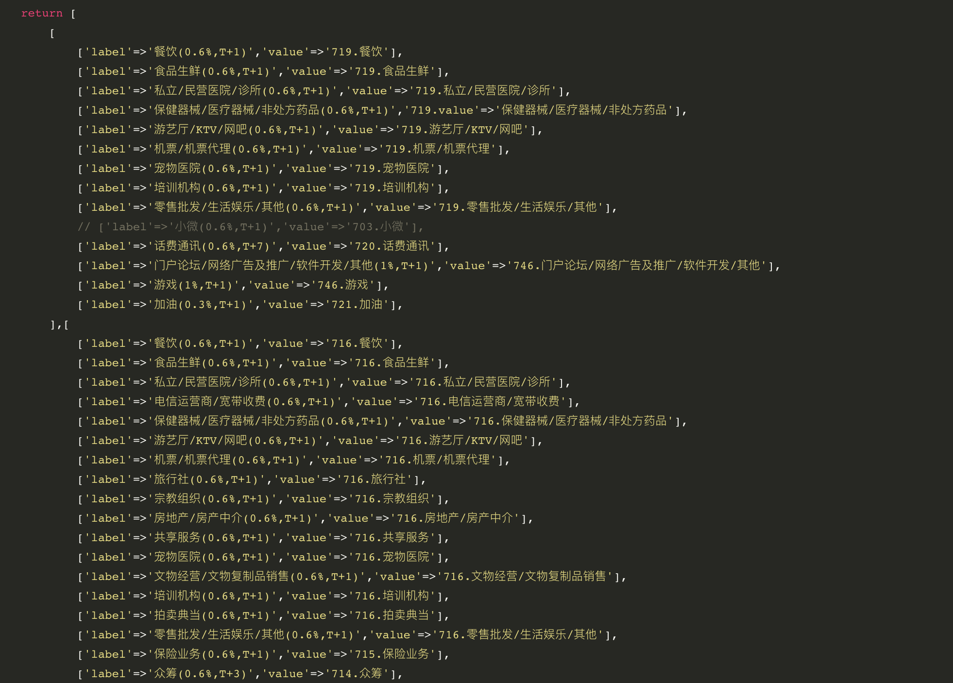 是不是需要将行业中多个拆分开?例如:713 财经/股票类资讯,需要传 财经 或者 股票类资讯,不能直接传:财经/股票类资讯 ?