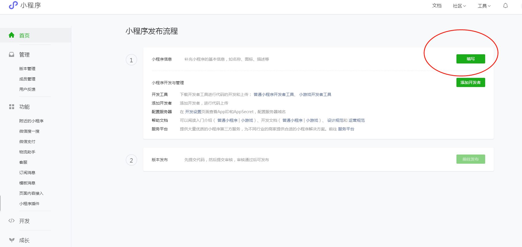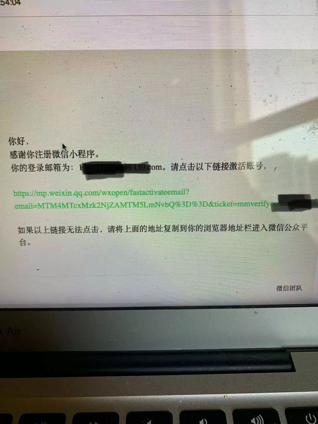 新申请了一个小程序,用一个新邮箱注册的,邮箱也也收到链接,点击后显示,此账号已激活,请使用账号密码登陆。然后跳转回公众号平台。却一直显示待完成注册。问了客服,也找不到她所说的登陆小程序后台的页面。请各位指教。