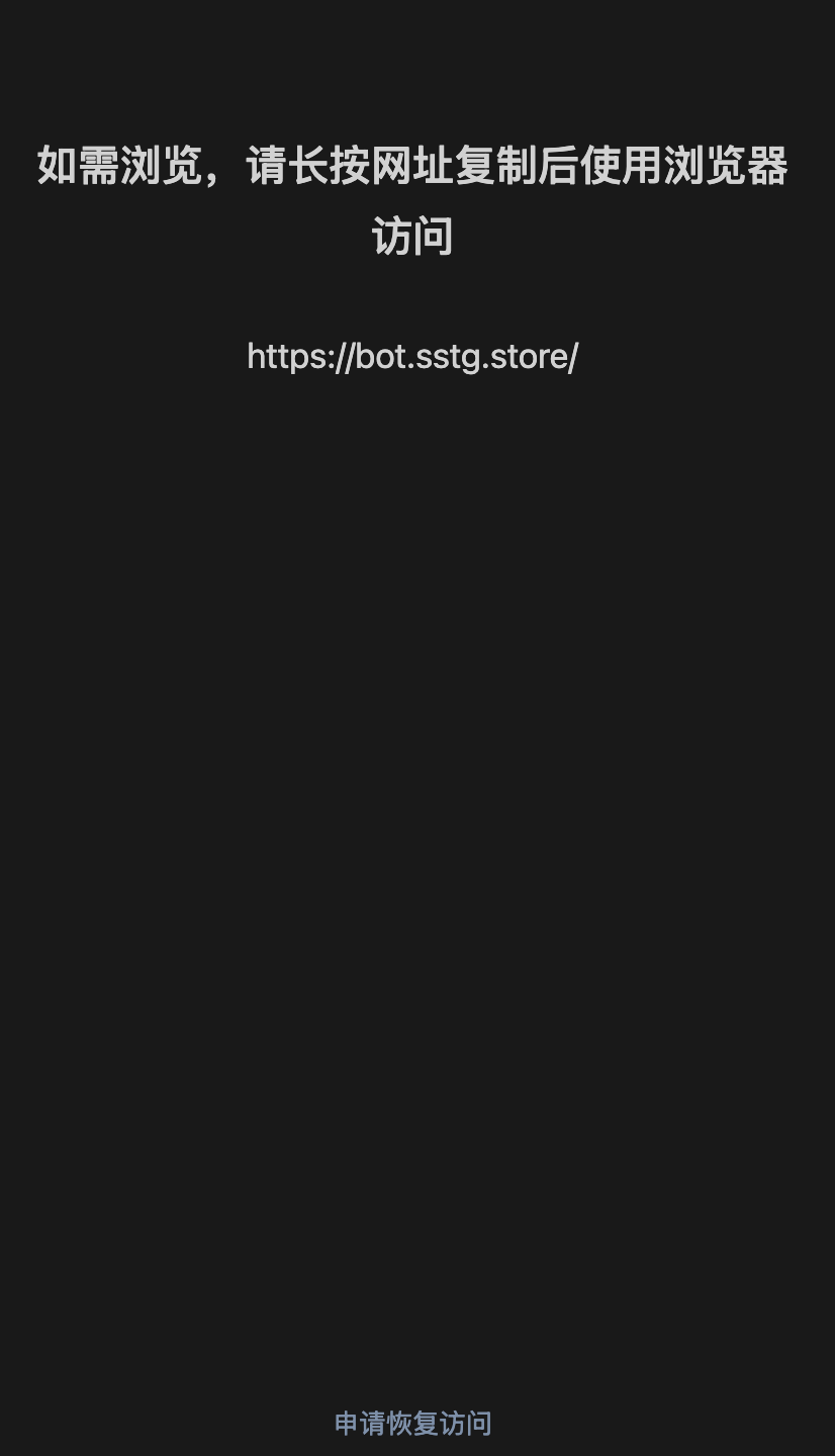 https://bot.sstg.store/,域名并未违规,但是在微信内被拦截,无法直接访问,需要能恢复直接访问
