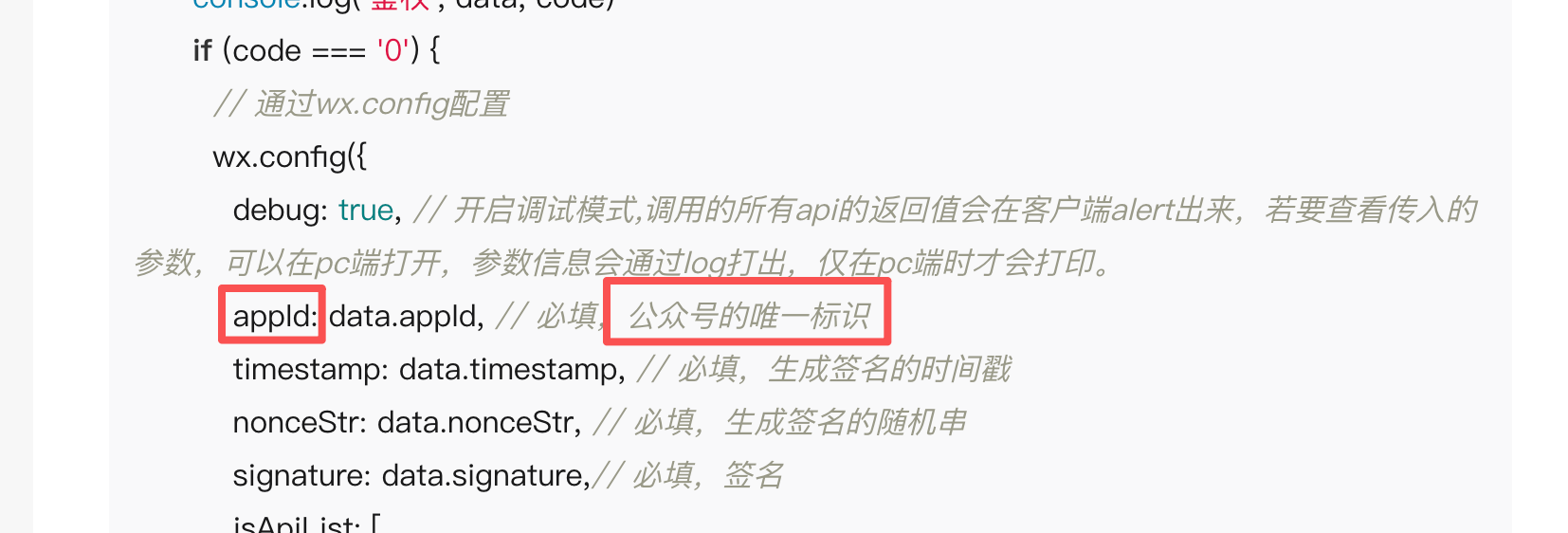 appId: data.appId, // 必填,公众号的唯一标识