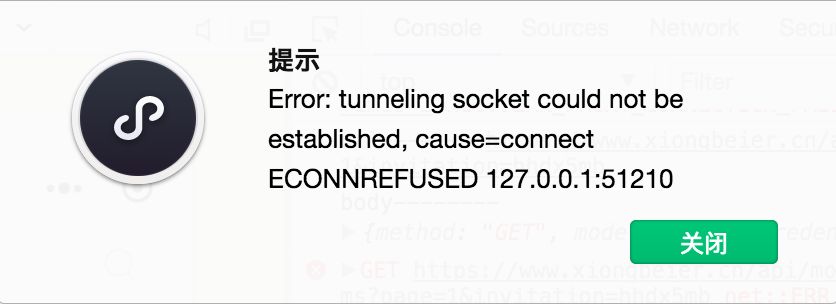 Error: tunneling socket could not be established, cause=connect ECONNREFUSED 127.0.0.1:51210