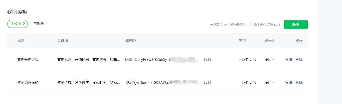 同一时间配置的两个订阅消息 一个失效了 另一个还可以正常订阅