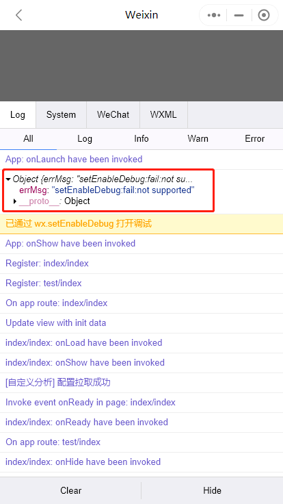wx.setEnableDebug({ enableDebug: true, complete(res){ console.log(res) } })试了下pc的微信小程序 返回not supported