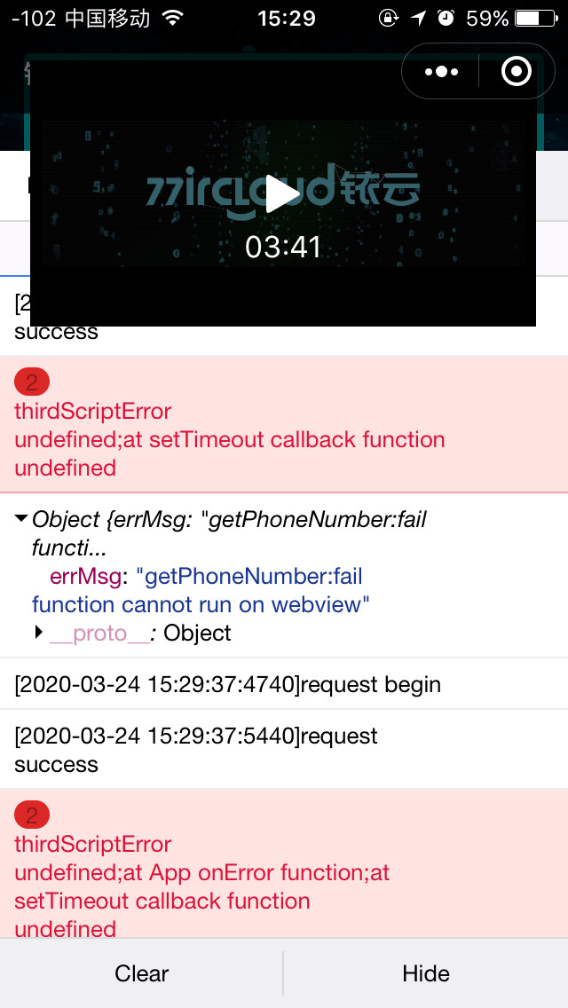 最近企业内部开发了一个小程序,发现在企业微信上无法调起授权操作,debug显示,信息提示如图errMsg:,请问这是不允许的吗,还是bug?,因为公司内部销售人员使用企业微信,所以出现了这种情况