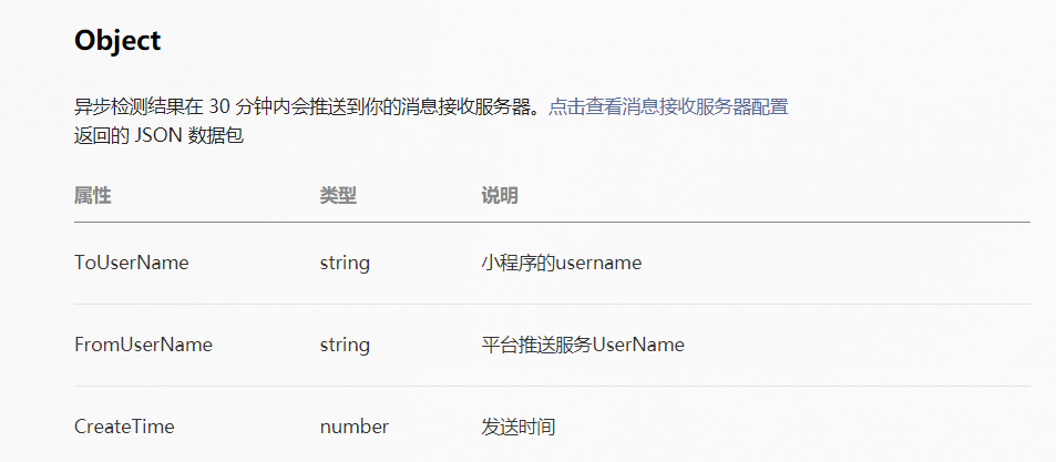 你好,目前security.mediaCheckAsync接口为异步校验,检测结果在 30 分钟内会推送到消息接收服务器,暂时不支持同步校验。