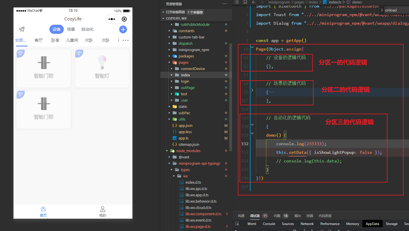 遇到问题:由于是swiper组件,三个栏目的业务代码都会混在一个页面里,这会使代码看起来十分冗长;这三个栏目的逻辑几乎不相关,这种情况下放在一个文件里显然是不合逻辑的,那有没有办法通过 import 等等方法,来导入js逻辑代码呢?