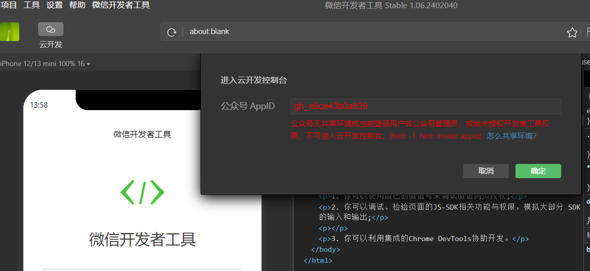 开发者工具无法使用云开发功能,怎么处理?