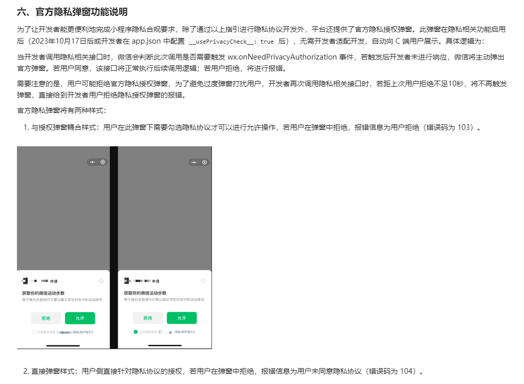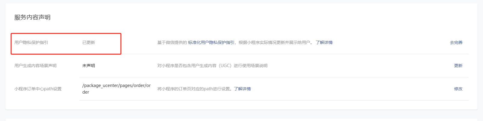 小程序调用地理位置授权弹窗时,底部没有显示隐私弹窗勾选,后台已经有填写好用户隐私协议的了。