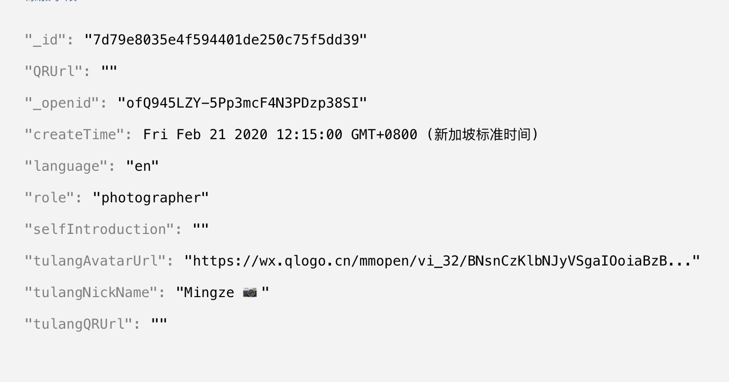'tulangQRUrl': '',//带有该用户唯一标识的小程序码